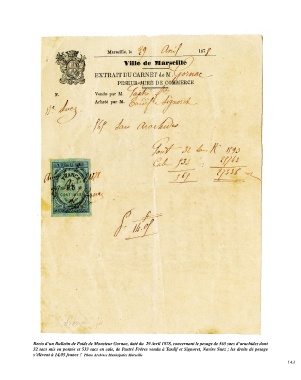 32 sacs mis en pontée et 533 sacs en cale, de Pastré Frères vendu à Tardif et Signoret, Navire Suez ; les droits de pesage