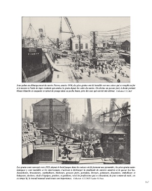 et à mesure à l’aide de tapis roulants qui amène le grain depuis les cales du navire. On devine un peseur juré, à droite portant